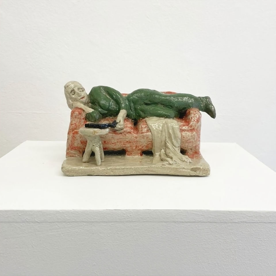 HELIUM 17.2 - 8.12.2024 Odsherreds Kunstmuseum In the exhibition helium, Mette Vangsgaard highlights how nature and humankind continue to be inextricably linked in a state of perpetual transformation. Rather than traditional landscapes and flower motifs, we meet people, wildlife and plantlife coexisiting in an erratic present characterized by instability. The exhibition is based on Vangsgaard's investigation of how processes of change and unpredictablility affect us as humans.The motif is modern rural life, composed of wildlife, plantlife and scenes from the everyday – based, in part, on Vangsgaard's own childhood, growing up in the Zealand countryside of Denmark. In her artistic practice, elements of humor and the absurd often coexist with underlying elements of social realism.Helium is derived from the Greek name for the sun and the sun god, Helios. The title of the exhibition refers not only to, the Sun Chariot, the famous Bronze Age artefact from Odsherred, but also to the instability of helium as a chemical element. An instability that characterizes the times in which we live. The exhibition are supported by Grosserer F. L. Foghts Fond, Louis Hansen Fonden, Yorks Fond, Danish Arts Foundation
